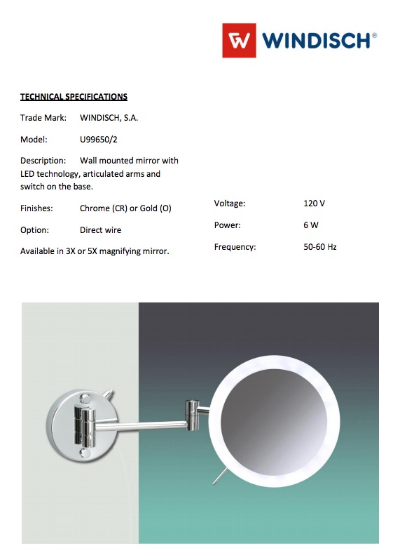Windisch LED Wall Illuminated Mirror 99650/1CP 3X for direct wire which is made in Spain