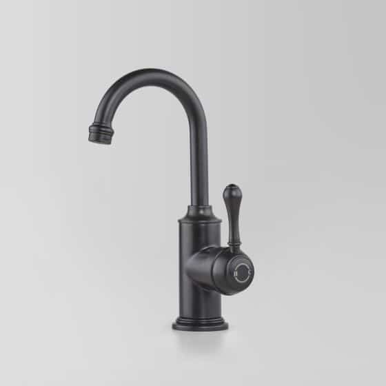 Astra Walker Olde Signature English Matt Black Basin Mixer is basin mounted option that can be used on top of the basin or in the bench at the corner of a basin.