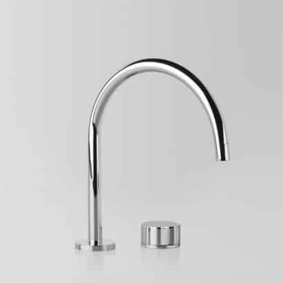 Astrawalker Hob Set with Mixer 205mm Swivel Spout is a progressive mixer type basin or kitchen mixer set. This means when the mixer is turned to the right, the water is always at full flow and can’t be controlled. Only the temperature can be changed which occurs by continuing to turn to the right.