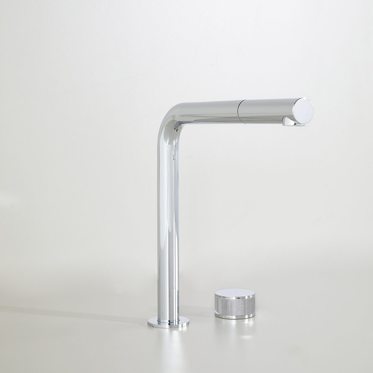 Astrawalker Assemble Kitchen Set with 250mm Pullout Spout has a very minimalist square spout design which has the pullout inside the actual spout and allows for a seperate progressive mixer. The pullout gives it added practicality and the handle can have three different variant style including a small pin, a recess cut out of the handle and a smooth round dial.