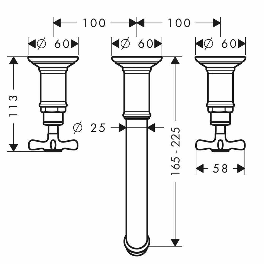 Axor Montreux 3-hole basin mixer wall-mounted spout 165-225 mm and cross handles is a German engineered and manufactured traditional wall set. The intelligent part about this range is that spout is adjustable from 165-225mm which gives expert accuracy when sitting over a basin. It is available in every AXOR special colour and has laminar flow.