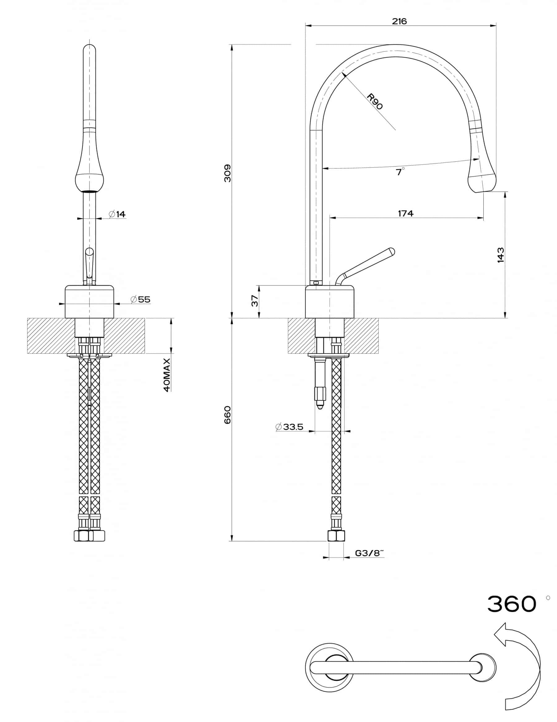 Spout Radius of 90mm