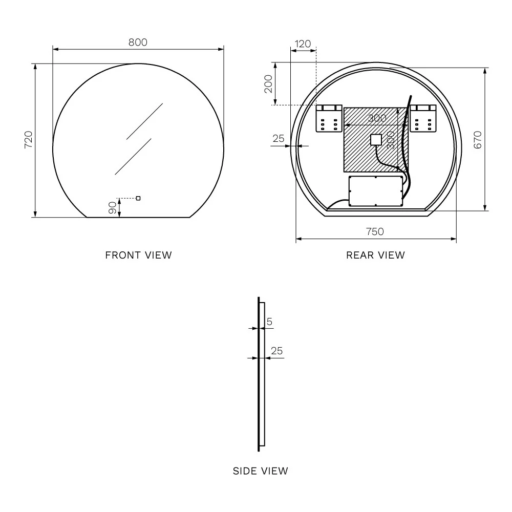 Dimensions W 800 mm × H 720 mm × D 25 mm