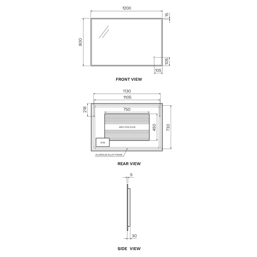 The Pure Luce Progressive 1200 LED Mirror features Progressive lighting which transitions from cool to warm white. This occurs when the soft touch button is gently held down. To switch on the light, gently touch the soft touch button and the LED will be the same light shade as when it was previously switched off.