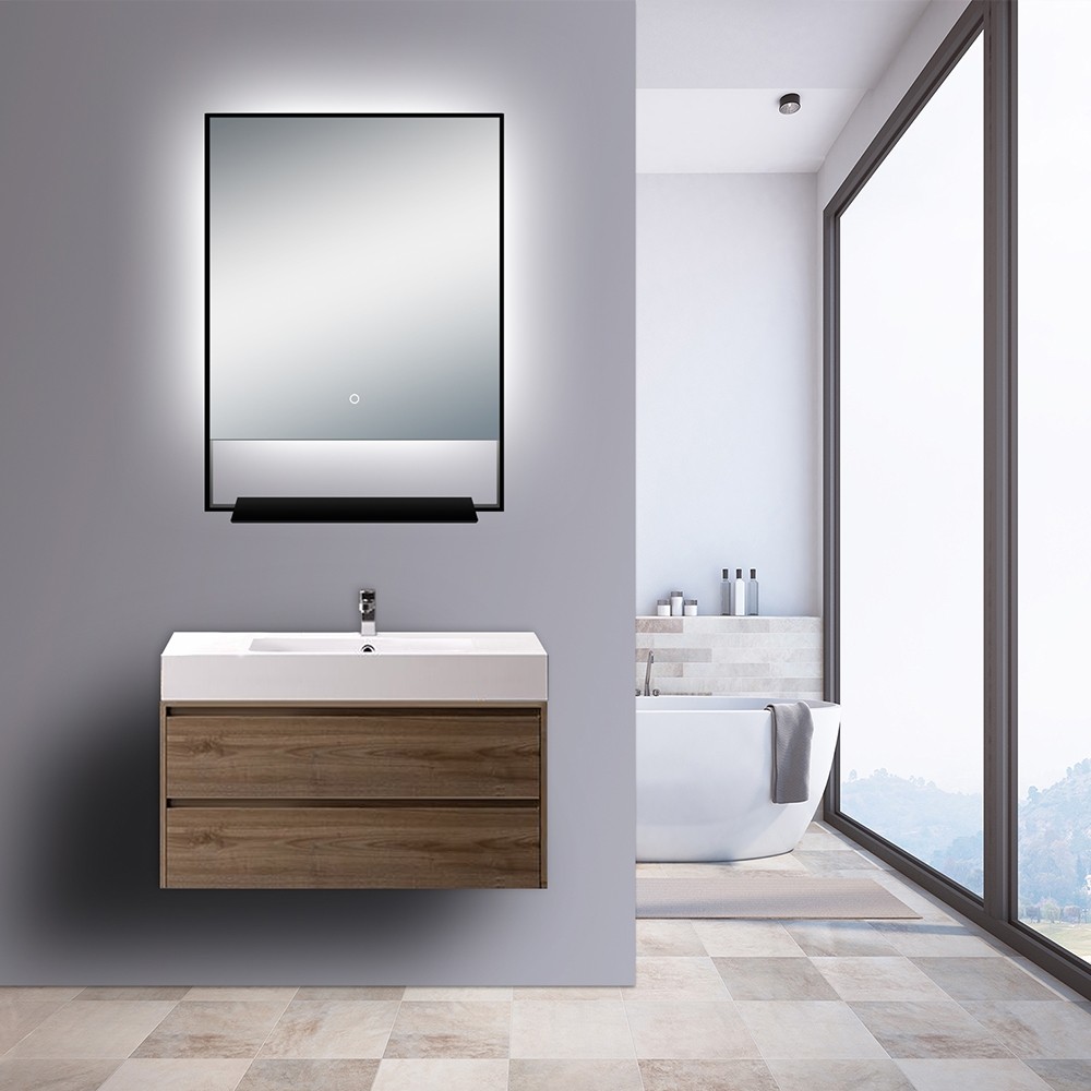 Streamline Arcisan mirror with frame and shelf has the lights and demister which are operated via the touch switch. The beautiful black shelf is very practical and black trim adds a nice detail. We have this product on display in the showroom and looks stunning in real life.