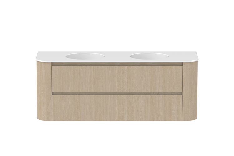 Wall hung, twin all-drawer model with curved feature ends.