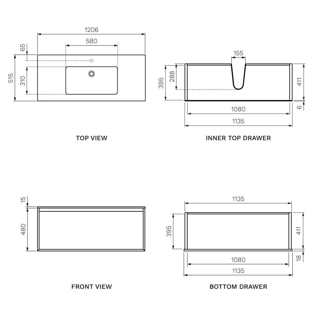 Width x Depth x Height: 1206 x 515 x 495mm