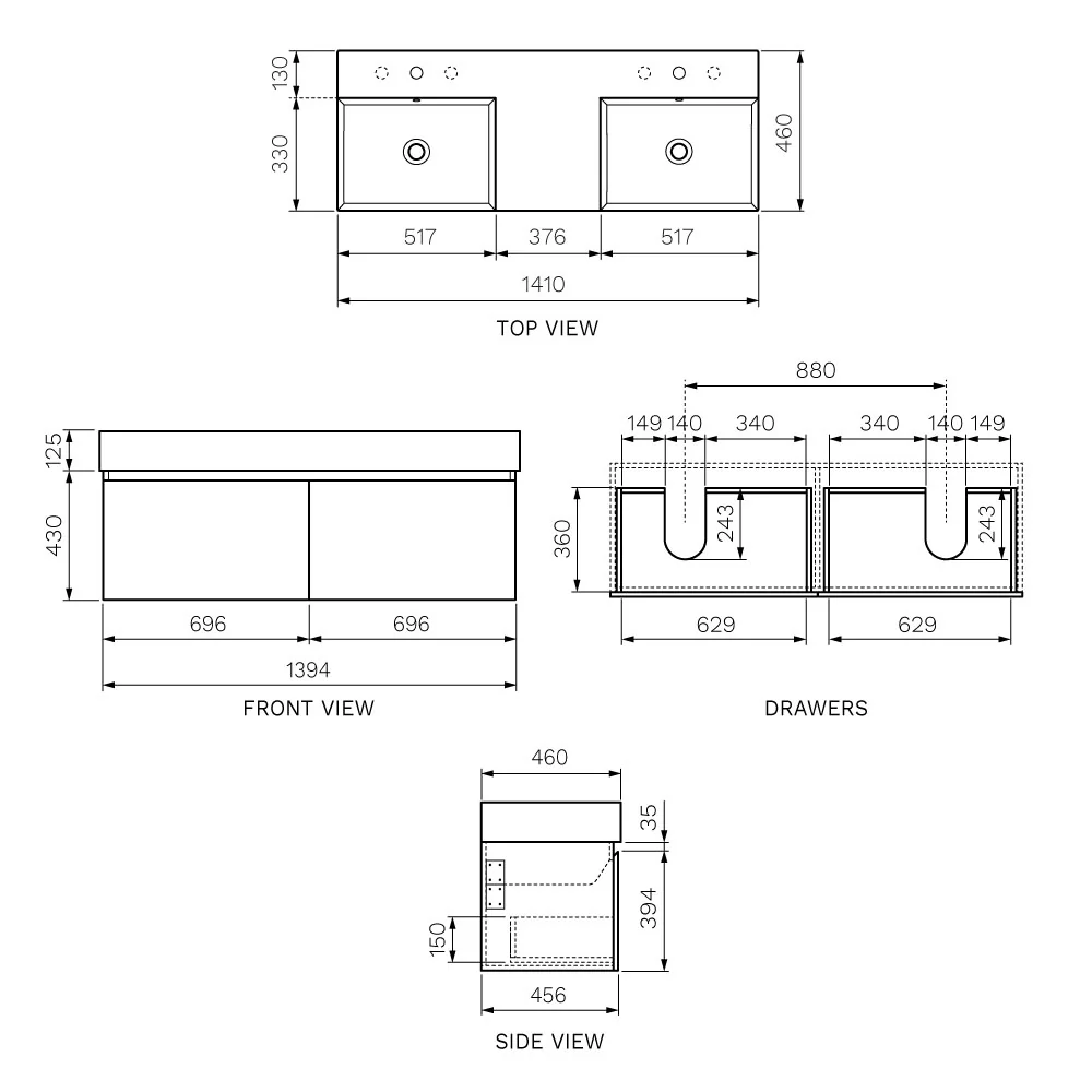 Parisi Rocki Twenty 1400 Wall Cabinet with Double Bowl Top