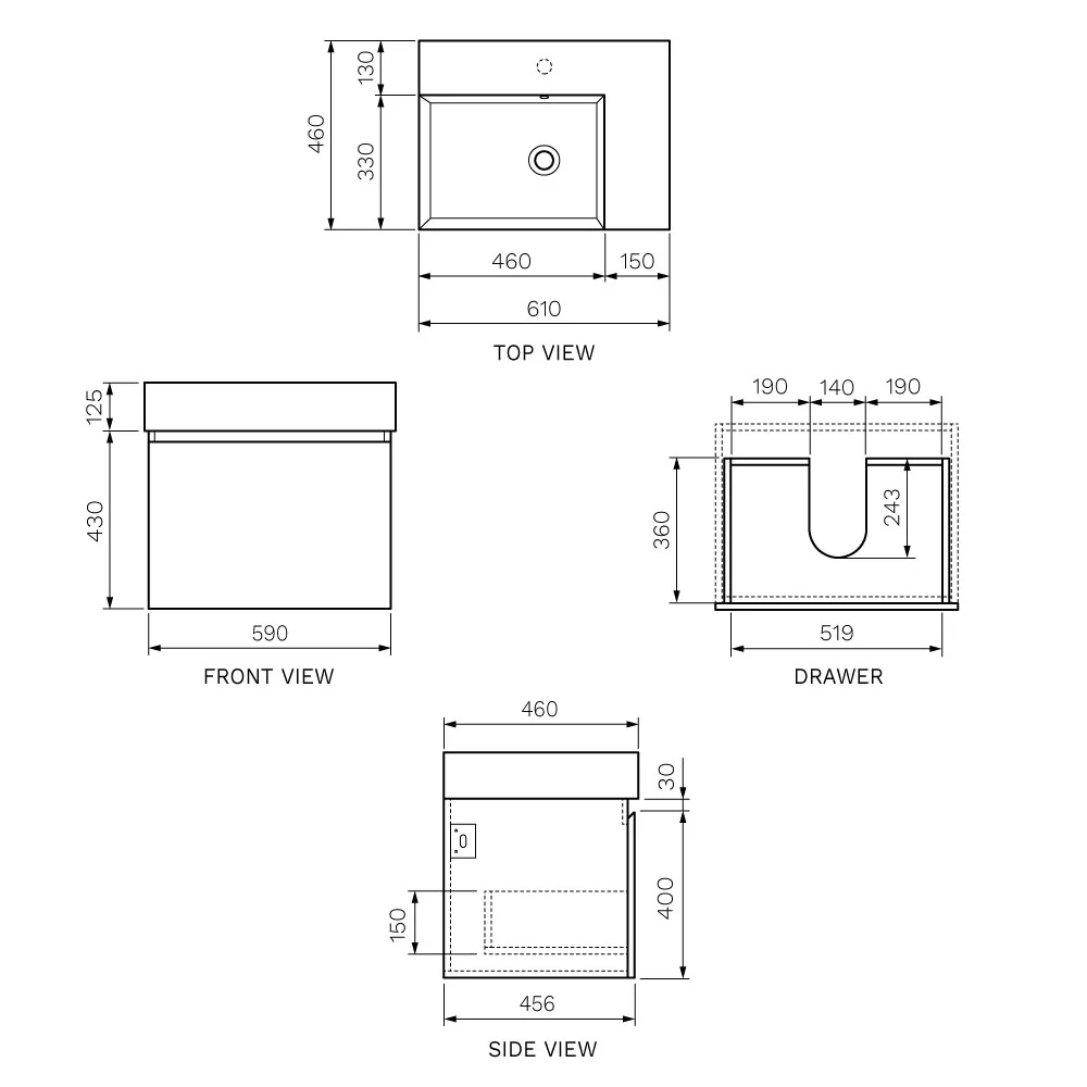 Tapware Pairing: This vanity does not come with a tap, allowing you to choose a style that fits your vision. We recommend a Tall Basin Mixer in Matte Black or Brushed Gold to contrast beautifully with the Matt White top.