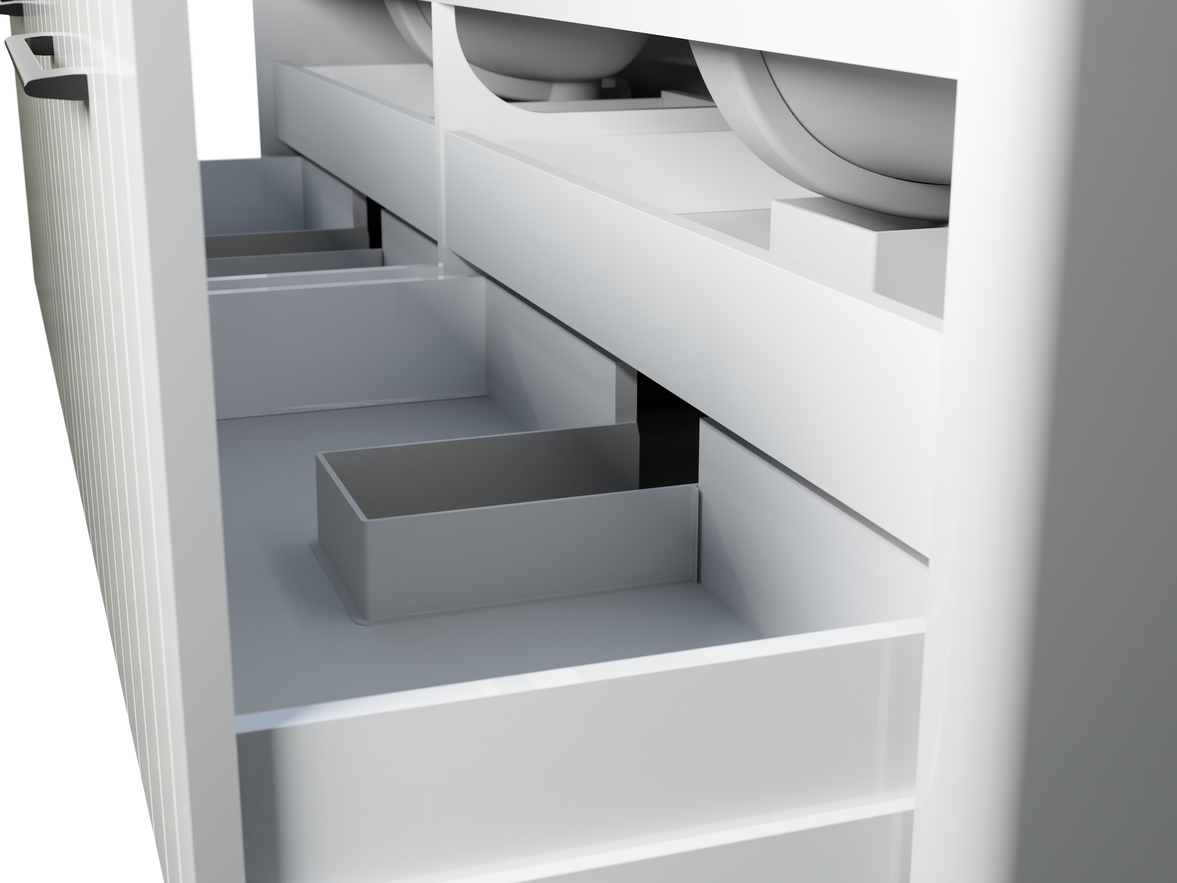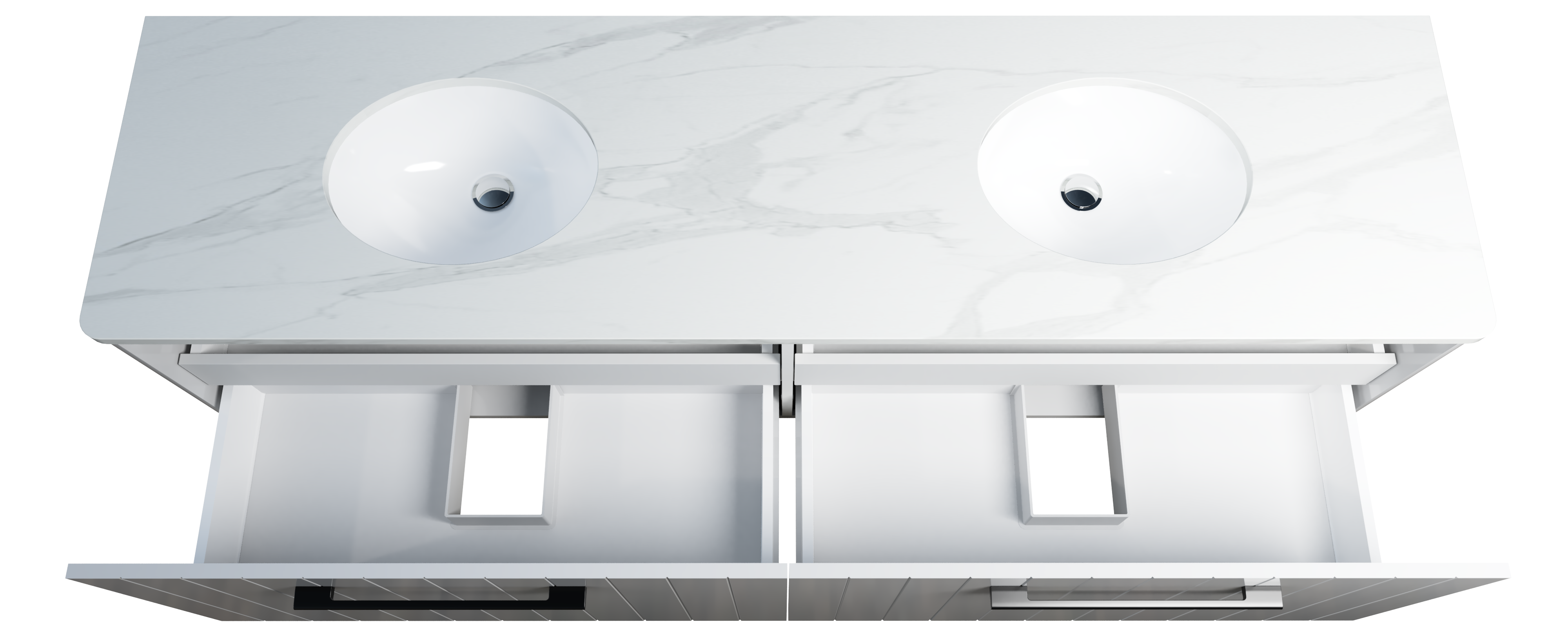 Timberline Saba 1800mm Wall Mounted Vanity Double Bowl has a convenient hidden internal drawer, which can even be removed if needed.