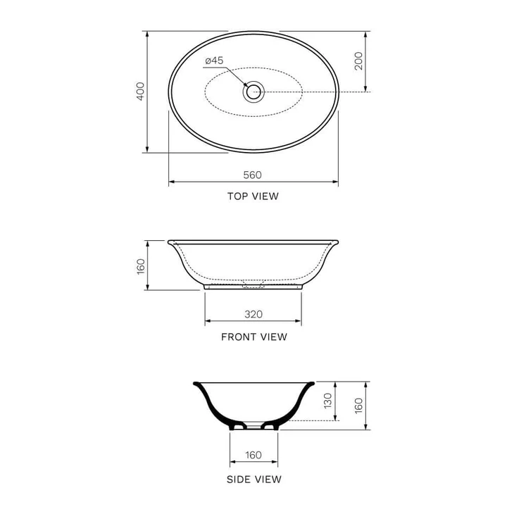Dimensions W 560 mm × H 160 mm × D 400 mm