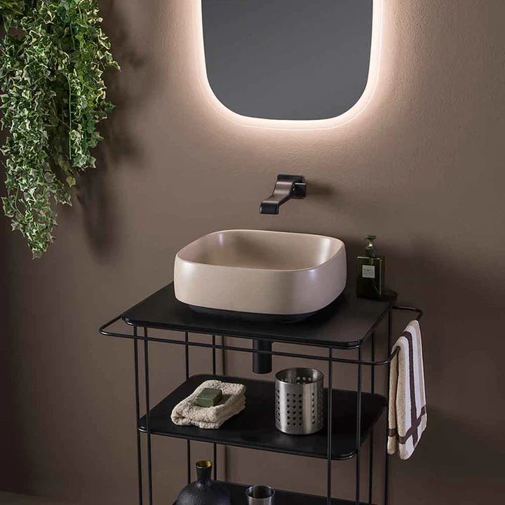 The Flag Bench Basin has generous volumes are adorned by fine details that design their contours, and its monolithic shapes are lightened by the slim profiles of the rounded corners.