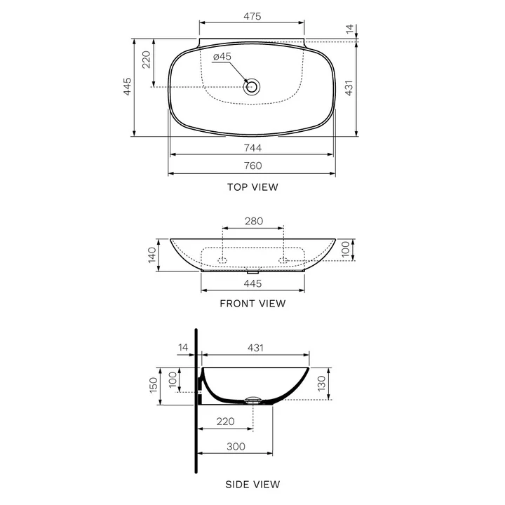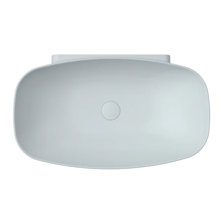 Nuda is a range of basins with a geometrical shape without rigid definition, but pure and sensual emphasising the female form. Characterised by wide bowls available in two different sizes. This version is a bench mounted basin connected with ledge to the wall and comes without tap landing.