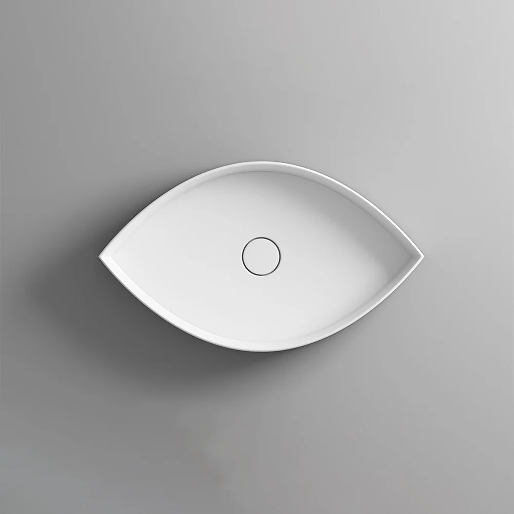 Occhio Bench Basin designed by Prospero Rasulo for Valdama. The sign of the new collection is that of the eye: a powerful symbolic form of ancient tradition, the eye belongs to the world of transcendence and spirituality. It is the ‘mirror of the soul’, the tool to look deeply and see beyond appearances. It is from the eyes, from the meeting of glances that the attraction, the love at first sight, is born.