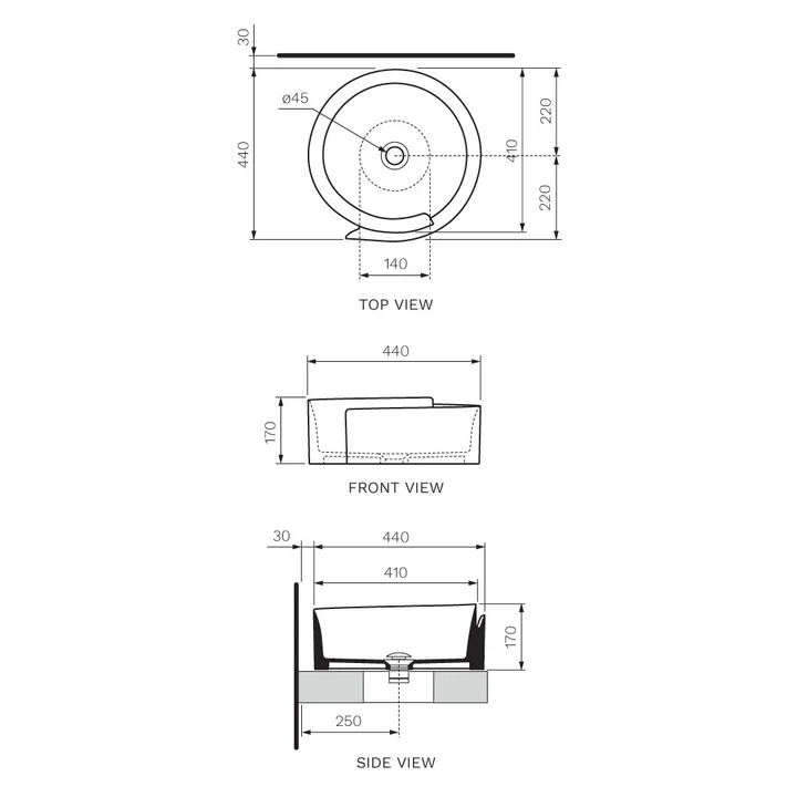 Dimensions W 440 mm × H 170 mm × D 440 mm
