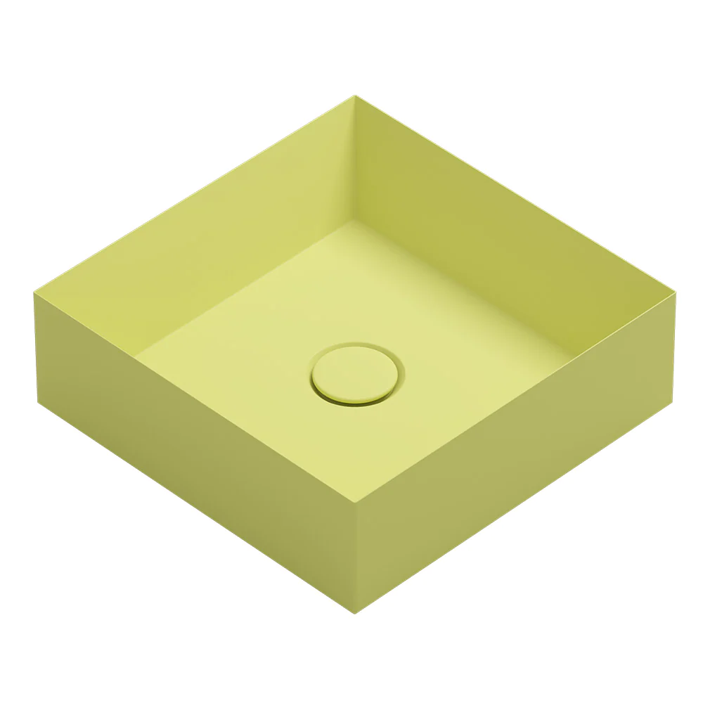 The Parisi Track Square Basin has geometric linear lines that give the basin are shape and cut out that makes it stand out aesthetically in the bathroom.