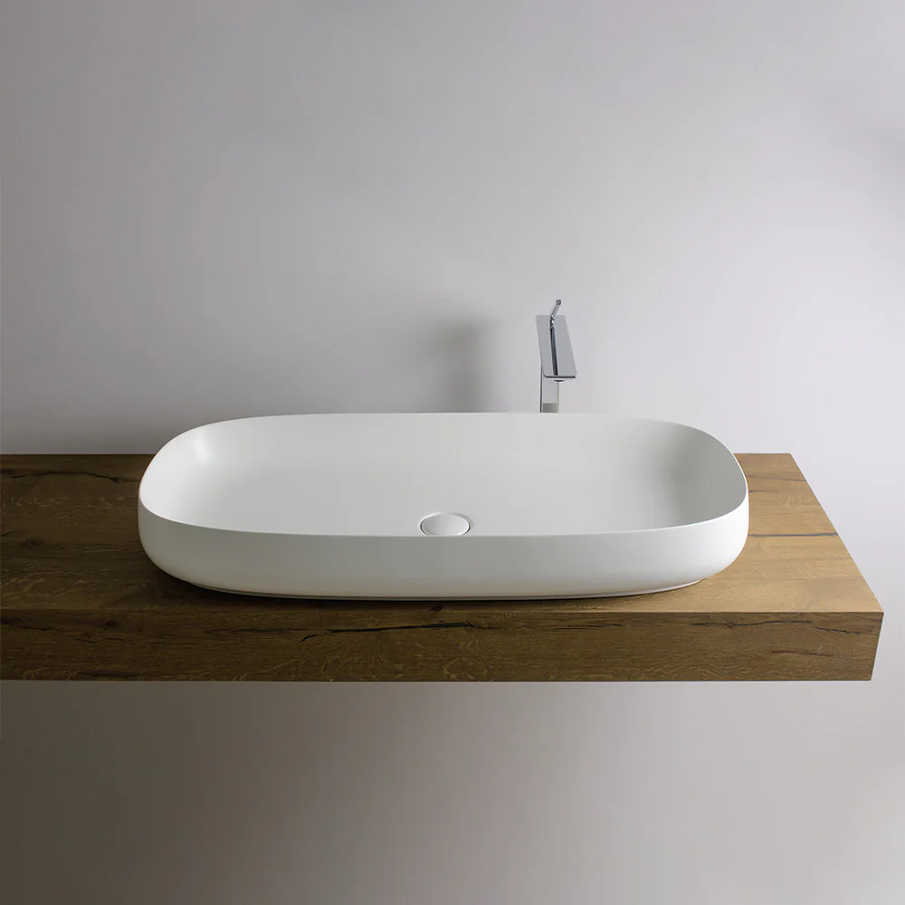The Seed 900 x 420 Bench Basin provides a sense of mystery as well as luxury. Prospero Rasulo designed Seed to explore the idea of a seeds growth into this form.