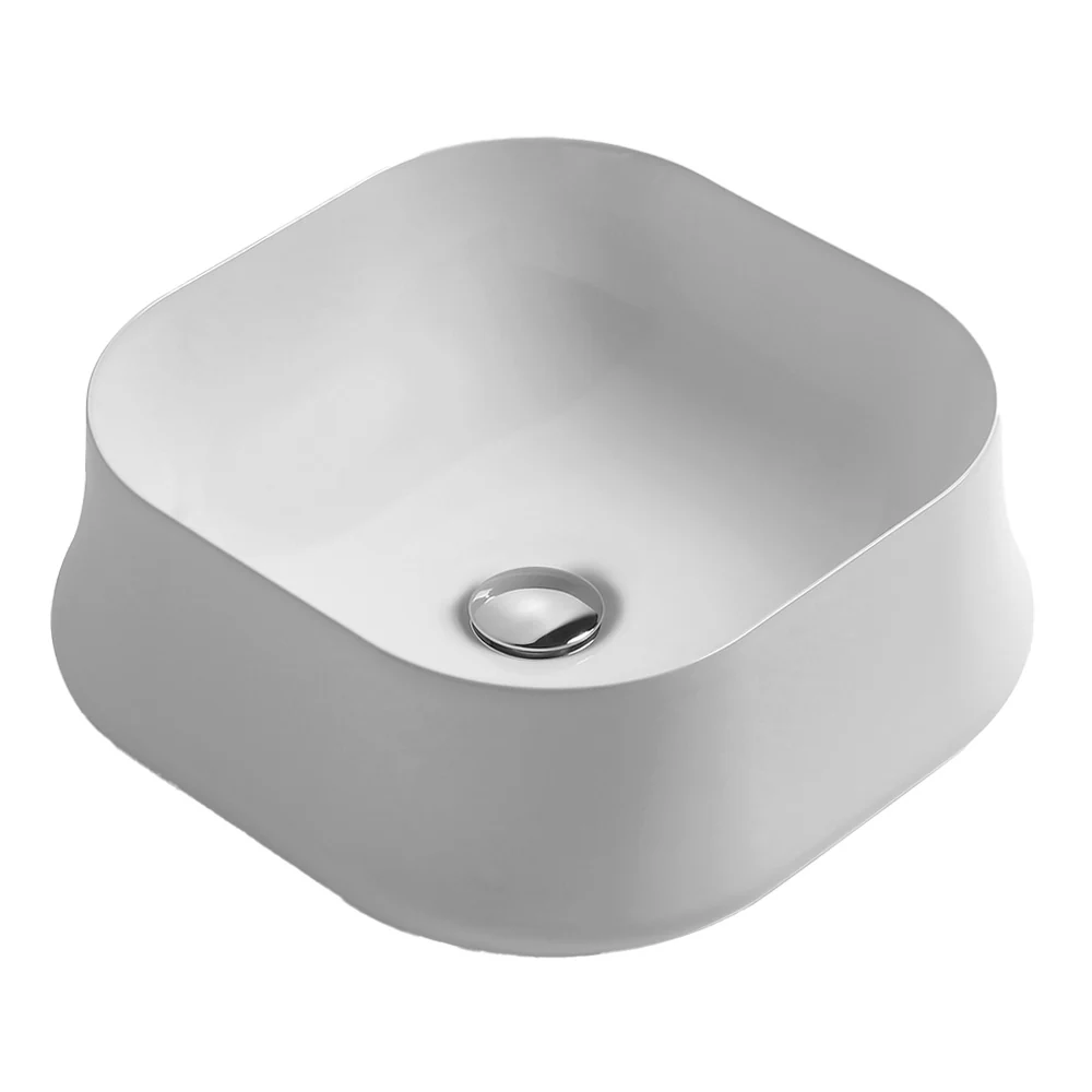 The form of the Sharp 42 Square Bench Basin references both the pottery wheel. A means to make ceramic items still in use, and the latest production techniques enabling its soft and light edges.