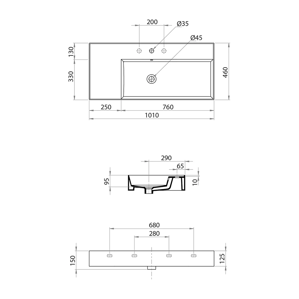 Dimensions W 1010 mm × H 125 mm × D 460 mm