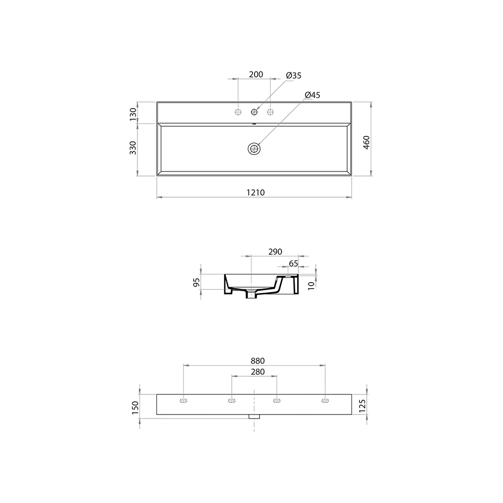 Dimensions L 1210 mm × W 460 mm × H 125 mm