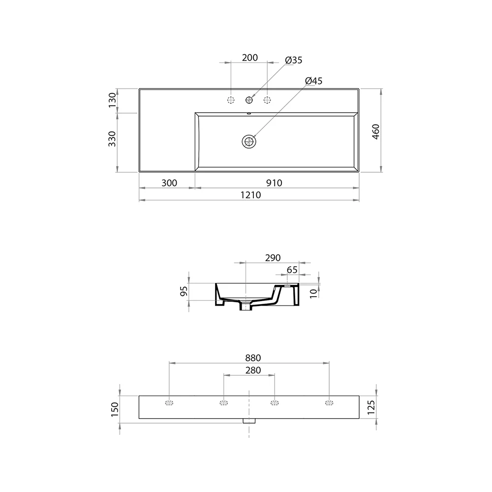 Dimensions W 1210 mm × H 125 mm × D 460 mm