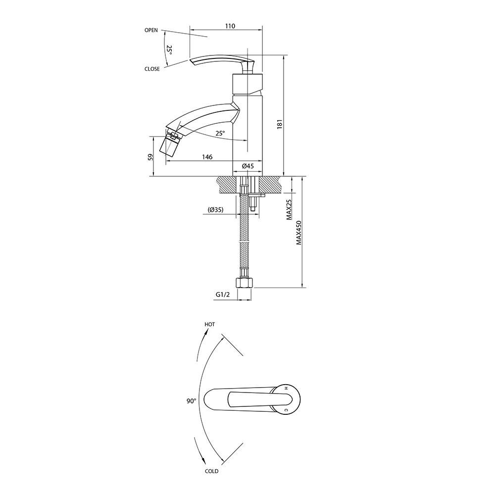 Installation Instructions: Swivel nozzle. Without pop-up waste.