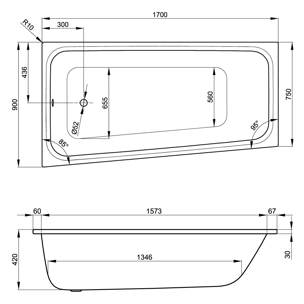 Bette Space M 1700 Drop in Steel Bath