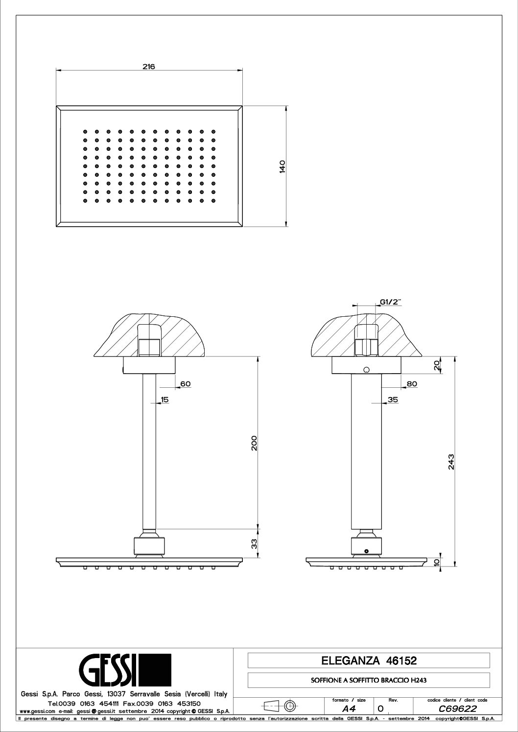 Gessi Eleganza Vertical Ceiling Shower is an Italian made shower designed by Prospero Rasulo