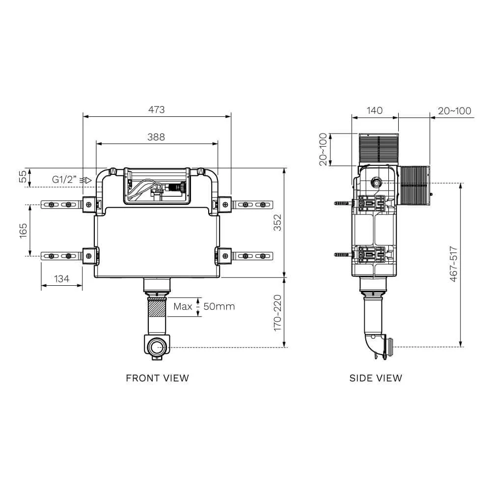 Parisi Undercounter Concealed Cistern with Adjustable Flush Pipe PA135 is suitable for wall faced Parisi pans and is suitable for Tondo and Blade push panels