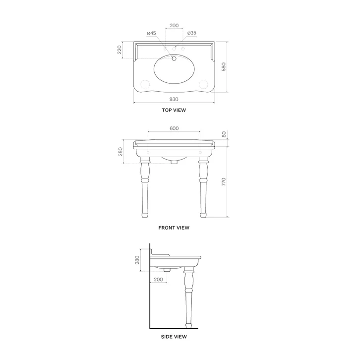 Parisi Hermitage Basin (920mm) with Ceramic Legs
