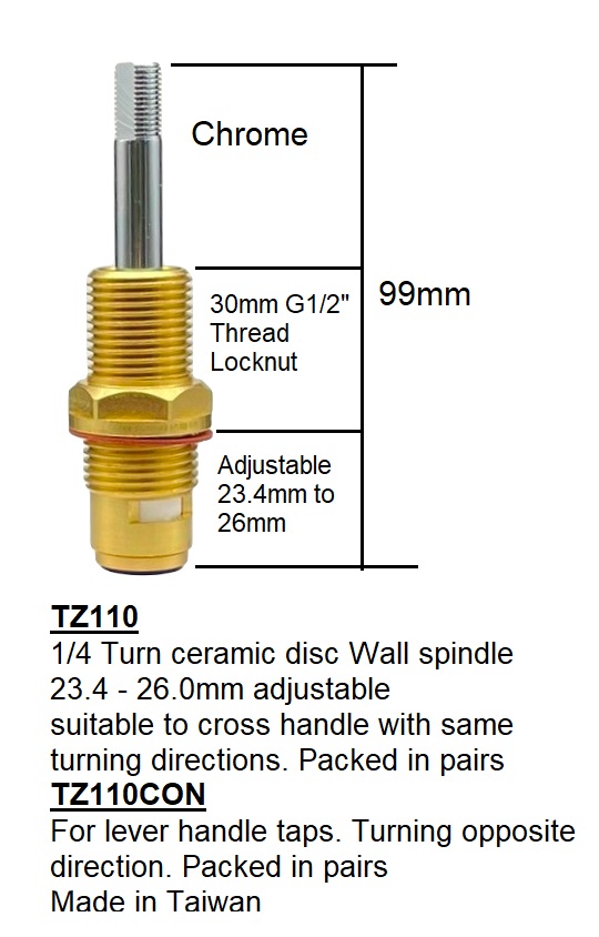 Easytap TZ110 Quarter Turn Wall Spindles Flat Side (Pair) suits Dorf Manor House Cross Handle tapware.