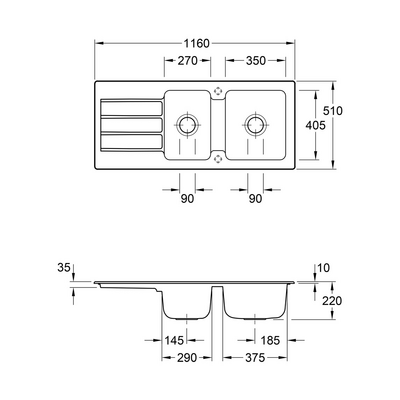 Architectura 80 1160 1 & 3 Quarter Sink, No Tap Hole from Villeroy & Boch has CeramicPlus applied to ensure it is easier to clean. This kitchen sink comes with an overflow and is available in Alpine White, Stone White