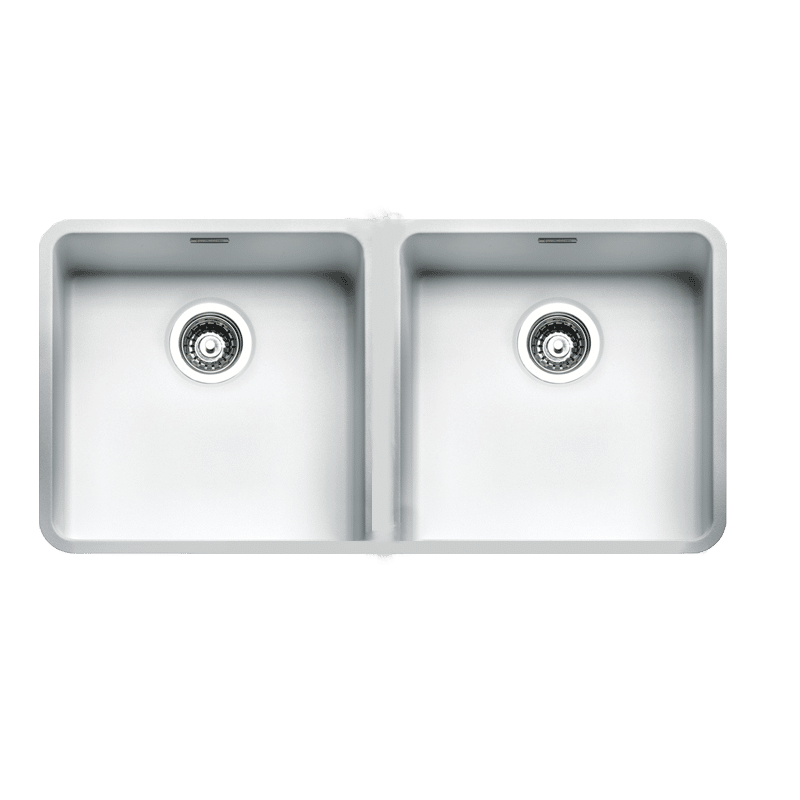 This is a double bowl Royal Graphite sink that is made in Amsterdam and comes in Midnight Sky, Sahara Sand and Arctic white.