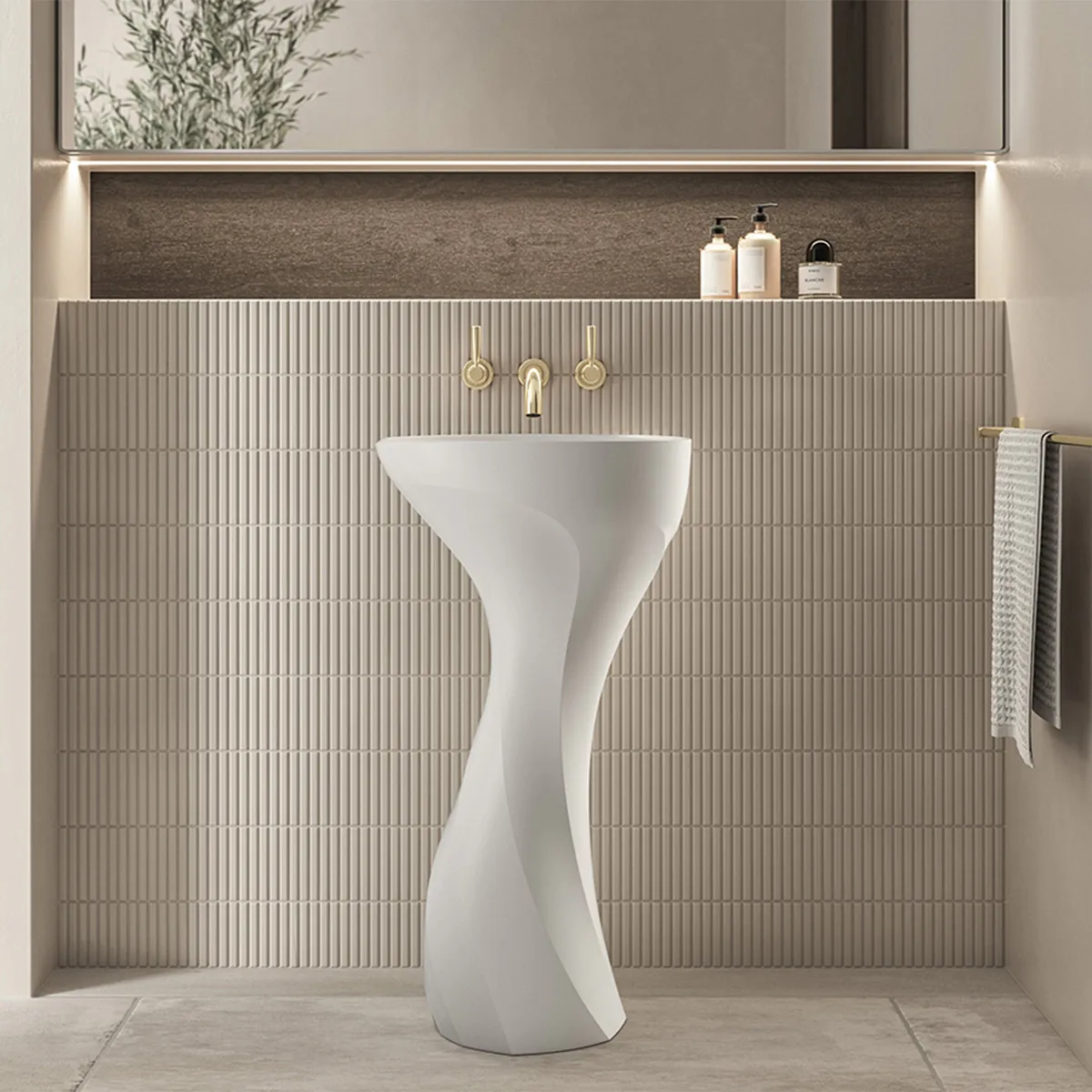 Victoria + Albert Seros 49 Podium Basin was commissioned by Sophie Elizabeth Thompson, a renowned British sculptor based in Barcelona. The basin is available in gloss and matt white.