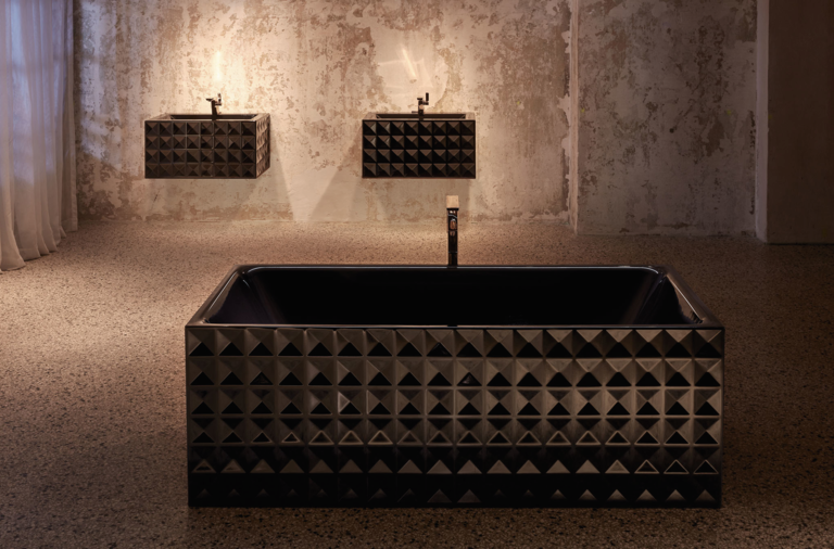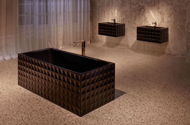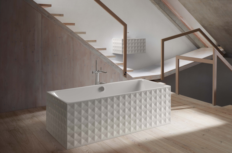 BetteLoft Ornament 1810 Silhouette Freestanding Steel Bath was designed by Dominik Tesseraux from Potsdam design office Tesseraux + Partner wanted this product to move from simple functionality to a statement piece. This shows the growing importance that bathrooms play in the overall design of a home. The BetteLoft collection shows just maleable titanium steel really can be. The embossed steel wrap plays on different shades of light as you walk around the bath tub. As it is glazed, it makes the surface highly scratch-proof and abrasion-resistant. Furthermore, there is a beautiful slope at one end to make this bath extremely comfortable to lie down in.