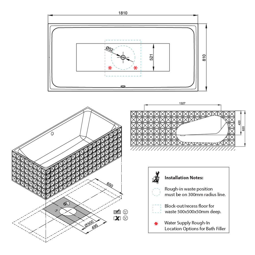 Dimensions L 1810 mm × W 810 mm × H 620 mm × D 420 mm