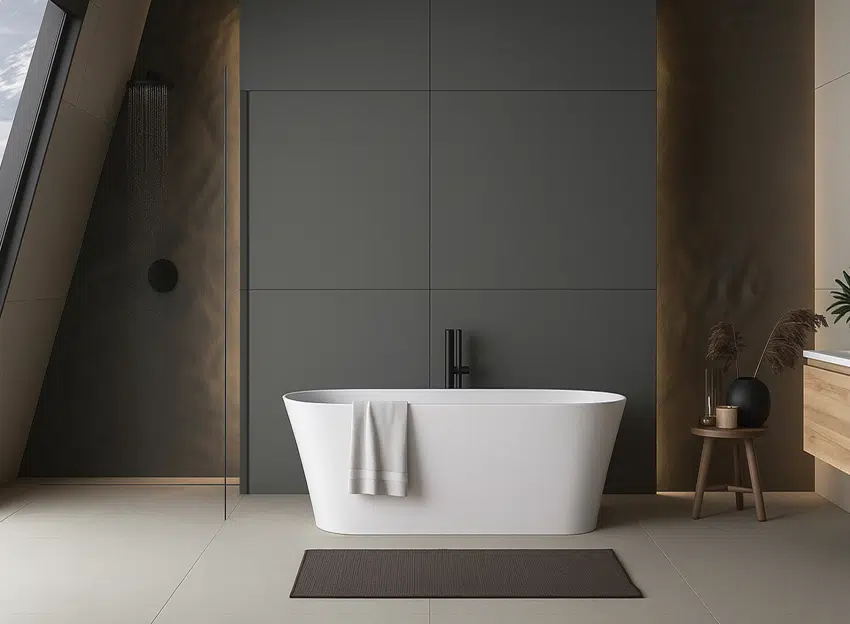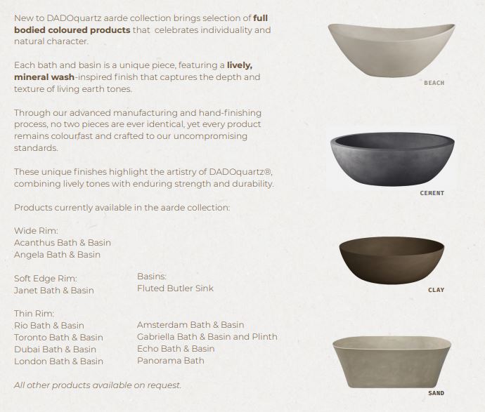 Artisan Texture: The Aarde process creates a distinct, tactile finish that feels organic and natural, moving away from the “clinical” look of standard white bathrooms.