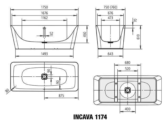 Bath Dimensions:Â 1750 x 760 x 435mm