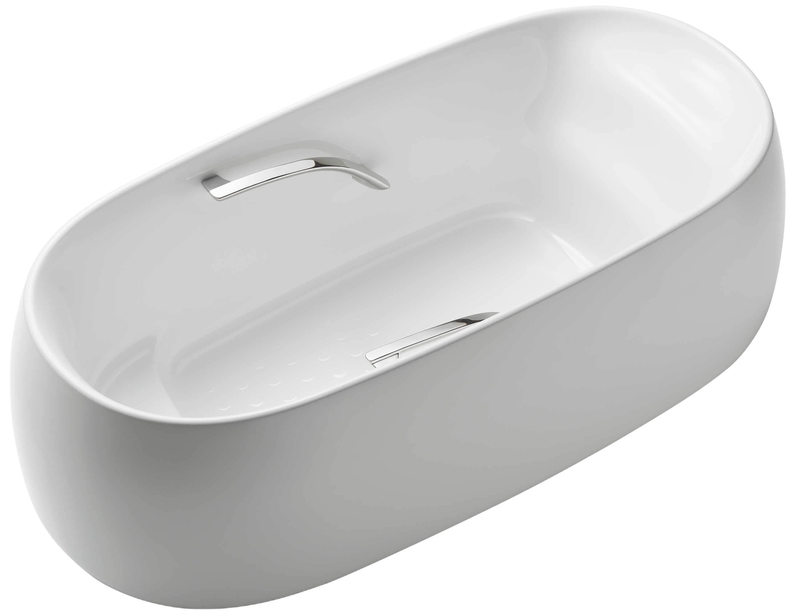 Toto Galalato 1695 Marble Freestanding Bath with Silver Grips – Gloss White