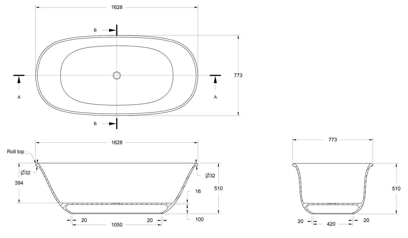 Turner Hastings Blanche 162 x 74 TitanCast Solid Surface Freestanding Bath has soft smooth curves and a rolled lip, this bath is well suited to any style bathroom. In a luxurious satin silk finish this bath will feel like an oasis away from home as you soak the day away.