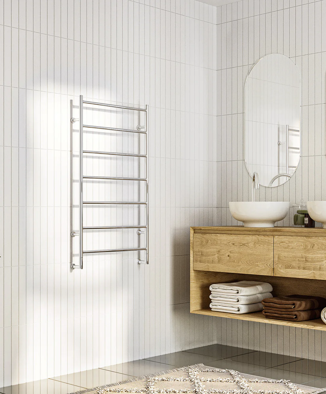 Hydrotherm TR2 is a beautifully simplistic and practical option for any bathroom utilising its generous gaps to allow efficient drying of fabrics. Its contemporary design that utilises hydro technology ensures the longevity you deserve for your bathroom