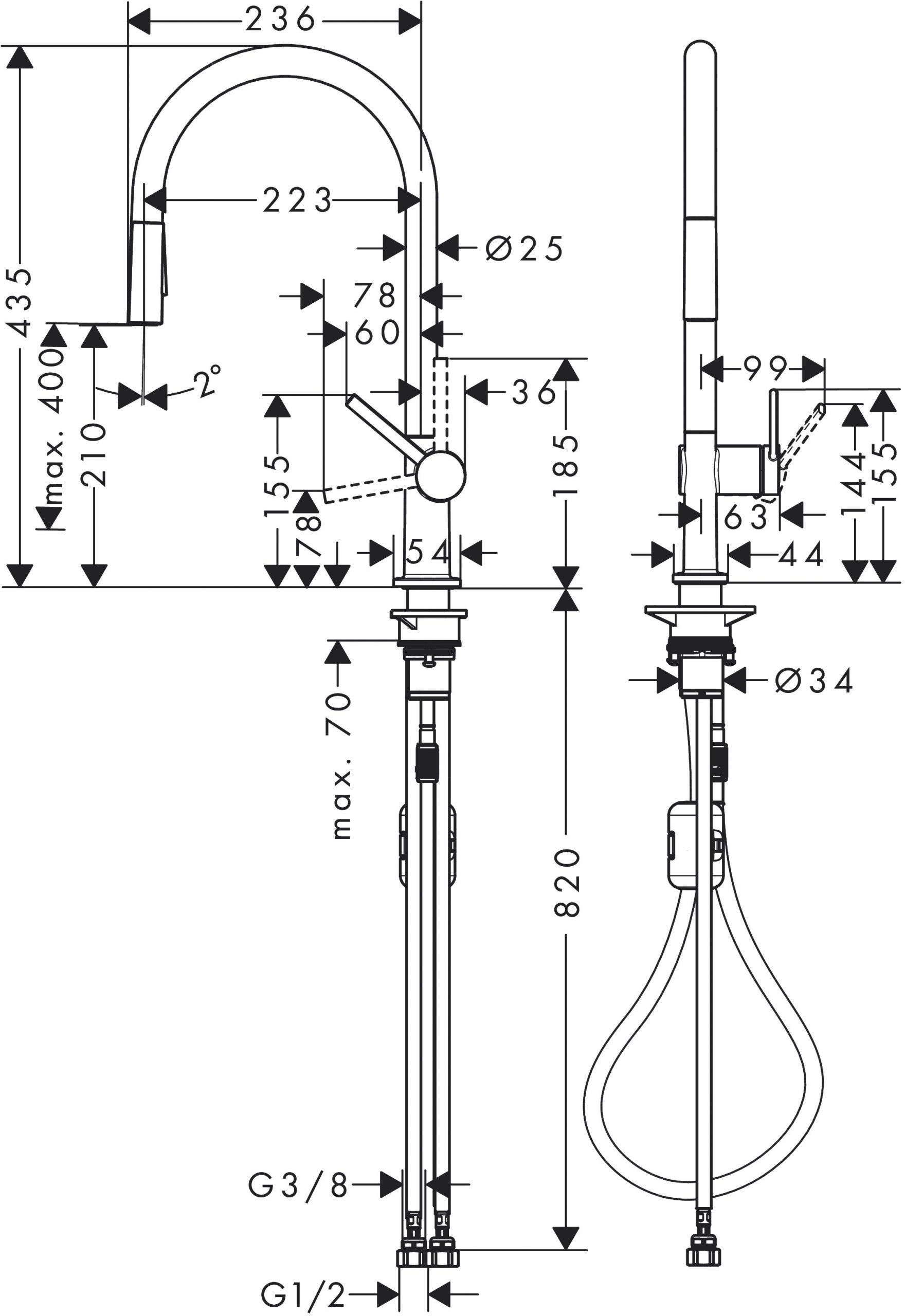 Dimensions L 236 mm × W 99 mm × H 435 mm