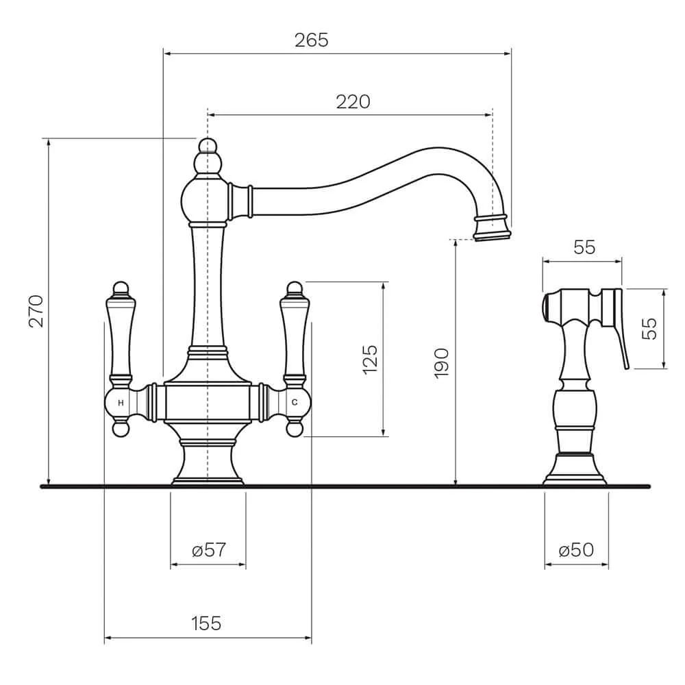 Parisi Hermitage Kitchen Twinner Tap with Seperate Handspray is available in Pewter and Chrome and is very classical The addition of a seperate handspray makes it very effective and practical in the kitchen. It suits fireclay butler sinks and undercounter double bowl sinks.