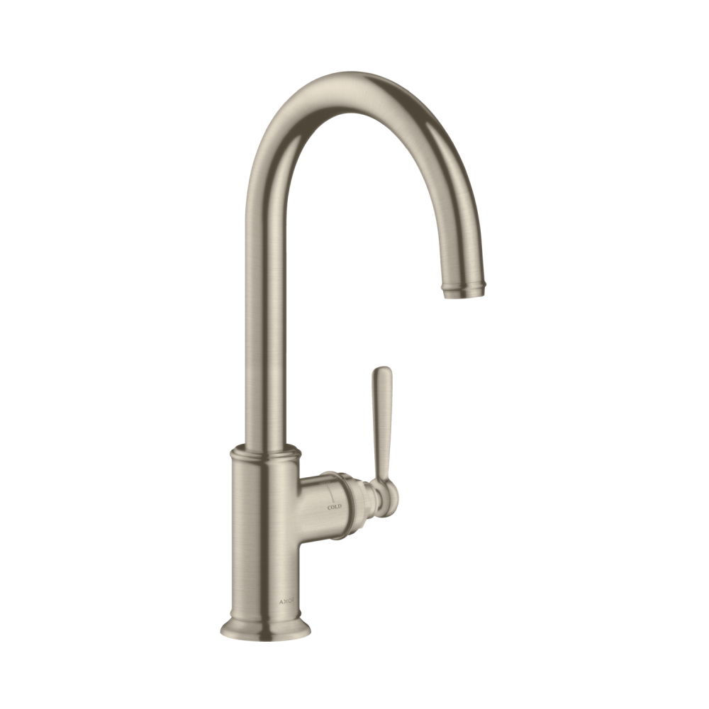 Axor Montreux 260 Kitchen Mixer with Swivel Spout has a very functional swivel range adjustable in 3 steps 110°, 150° or 360°. The Montreux range is a beautifully German engineered and manufactured product that has traditional deco detail for heritage style kitchen areas.
