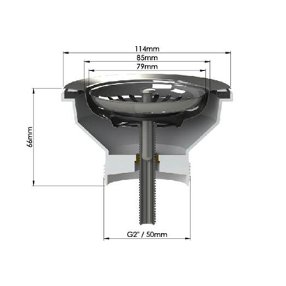 Material: Stainless Steel top & ABS plastic base Includes extended 70mm thread for thick ceramic sinks These wastes suit sinks between 0-70mm thick