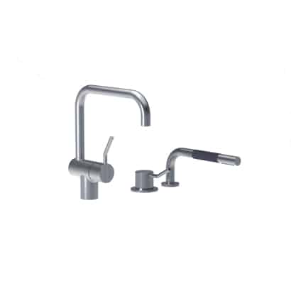 More importantly, VOLA have continued to adapt with the introduction of the KV1-500T1 kitchen mixer which introduces a pullout handshower on hose with another hob mounted mixer next to it so that both can be controlled separately. The handshower component is extremely practical and suits large bench spaces where you need to reach over two bowls and deep bench spaces.
