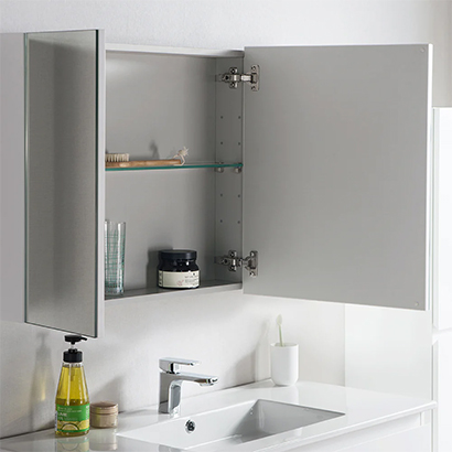 Parisi Pure Bianco 800 Mirror Cabinet. The premium moisture resistant Multi-wood joinery with Polyurethane Paint finish ensures long lasting durability whilst the grey internal finish provides a stylish and sophisticated unit.