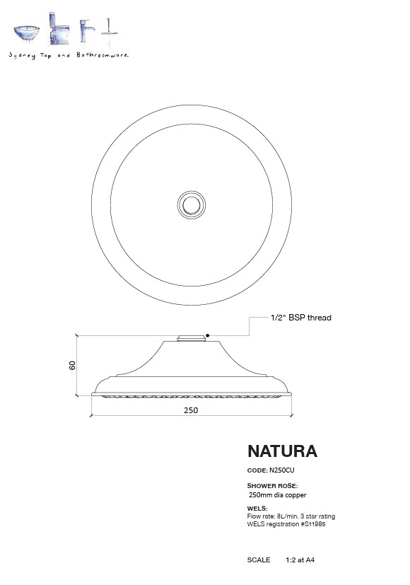 It is available as an overhead shower or a wall shower depending on the installation. Uses a standard 1/2″ female connection. Australian made and is 250mm wide diameter