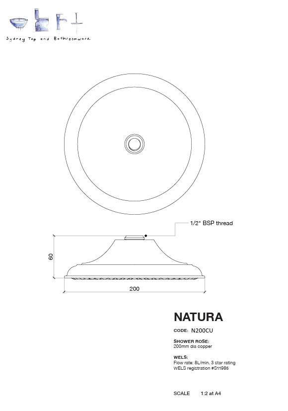 The Head: Natura Copper 200mm Overhead Shower (In Stock)