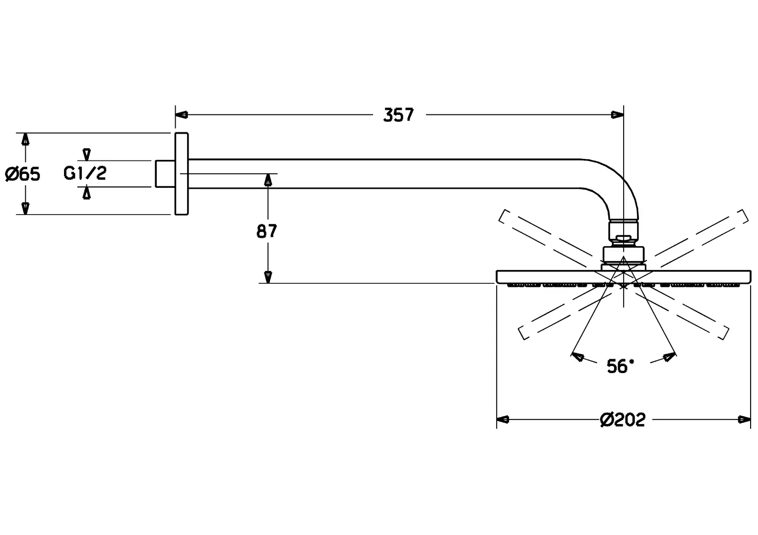 Hansa Viva 200 Overhead Shower on Wall Arm includes a HansaViva 200 Overhead Shower and a 250mm Wall Arm